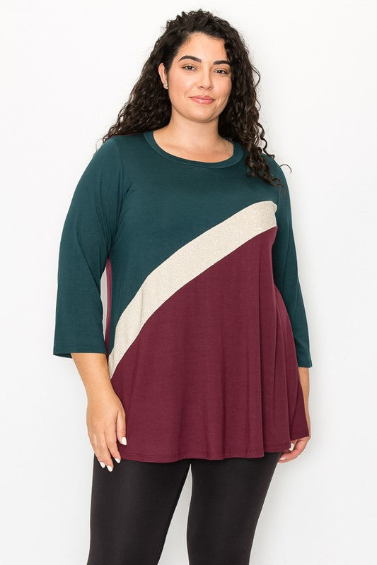 PSFU Red Plaid Glitter Colorblock Top Shirt