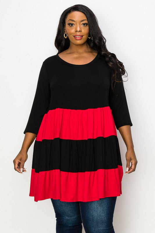 PSFU Red and Black Colorblock Tiered Shirt Top Tunic