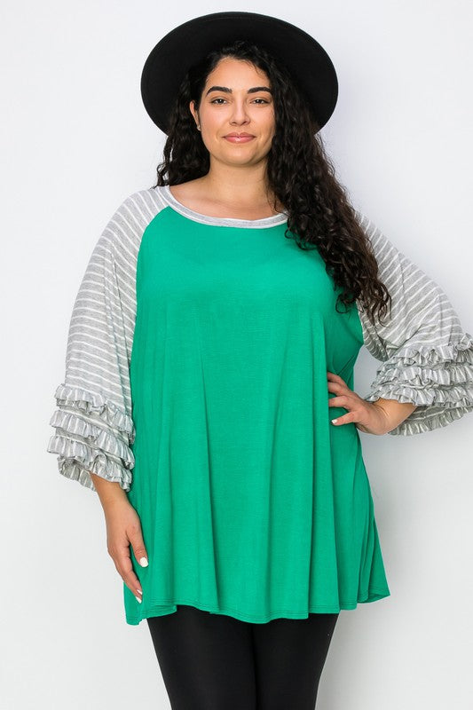 PSFU Green Top w Gray White Stripe Triple Ruffle Sleeves