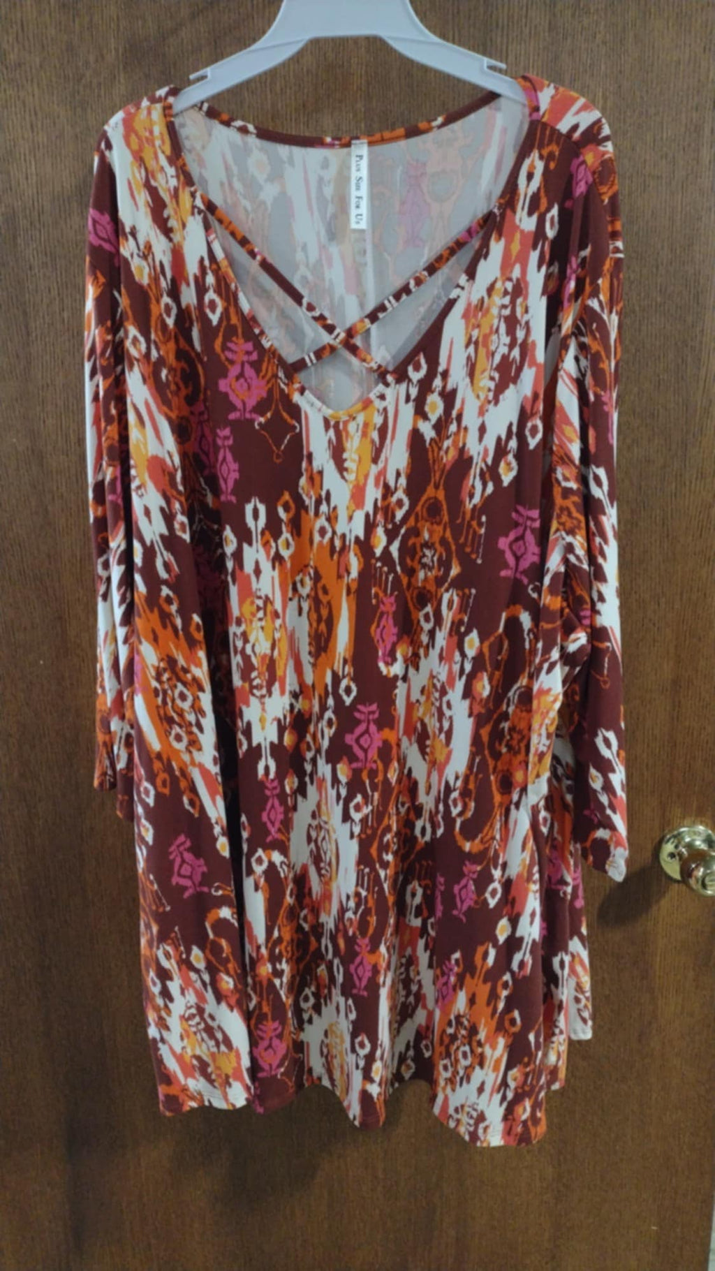 PSFU Burgundy Orange X Criss Cross Neckline Shirt Top