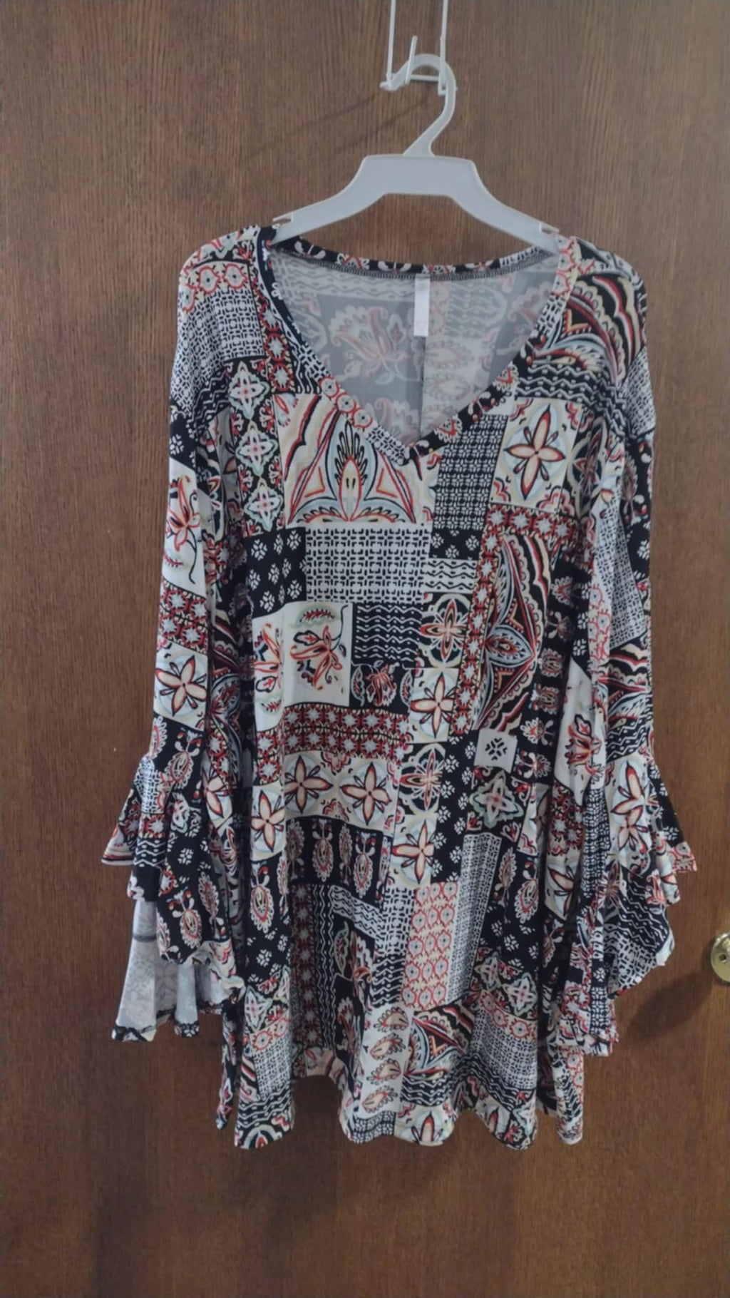 Blue Purple Floral V Neck Shirt Top w Wide Sleeves