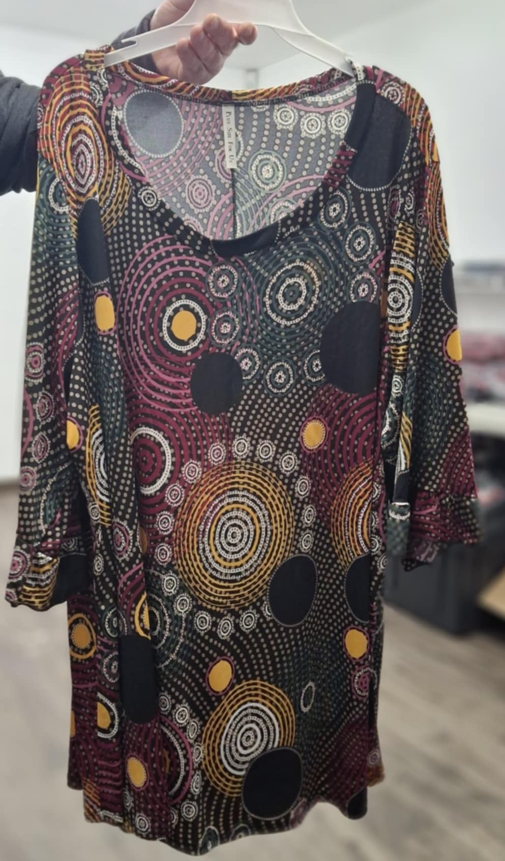 PSFU Black Purple Yellow Circle Medallion Shirt Top