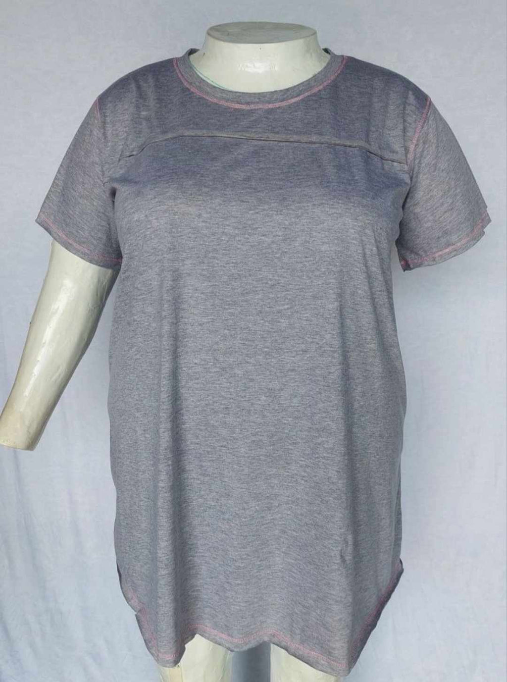 PSFU Long Gray Shirt Top Tunic w Pink Stitching
