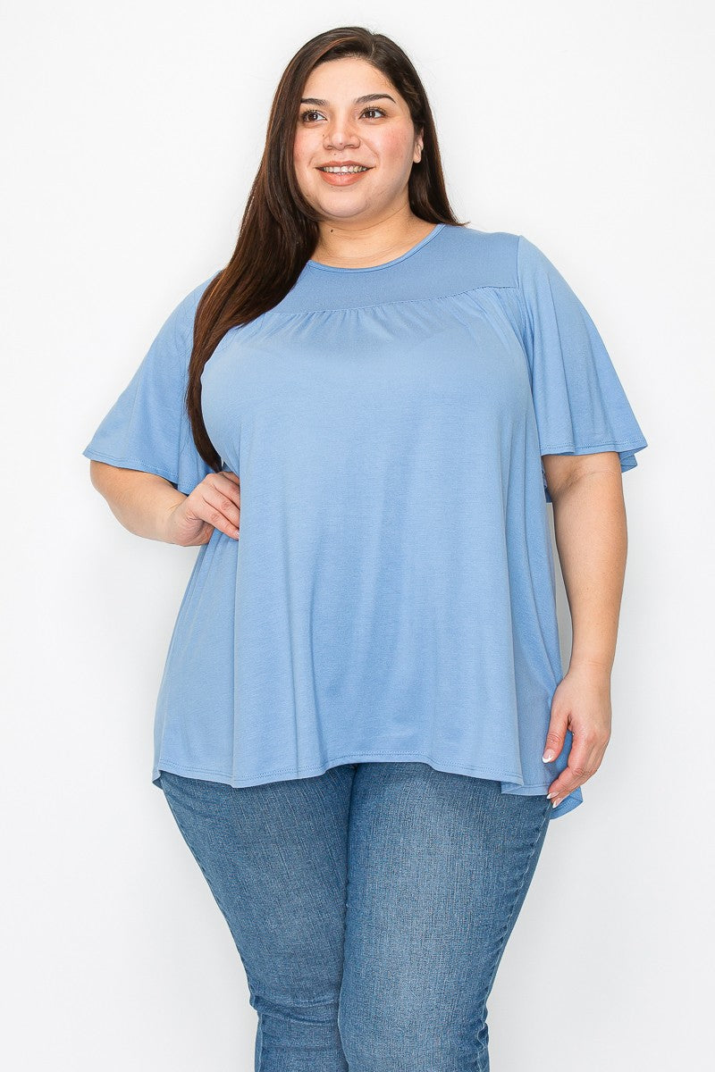Light Rose Pink Lightweight Sweatery Fabric Ruffle Neck Tunic Shirt Top