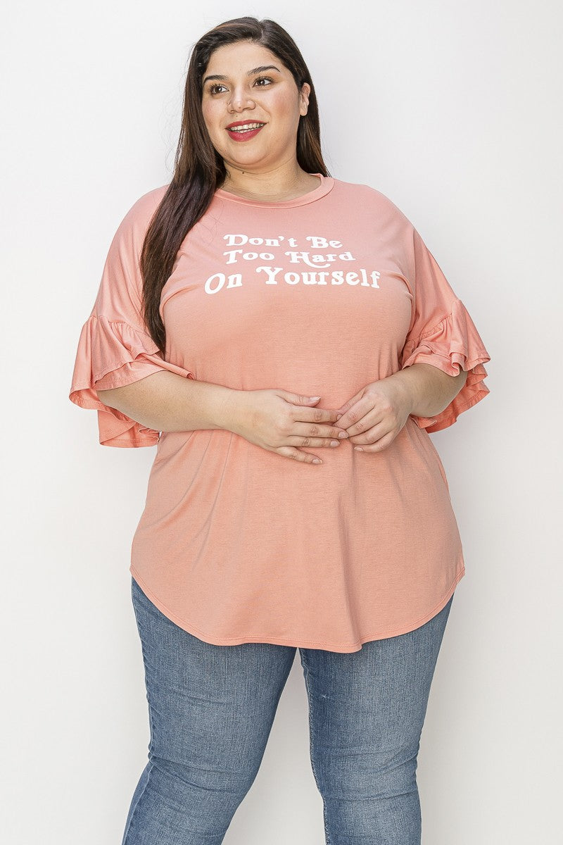 Peach Dont be To Hard On Yourself Graphic Shirt Top