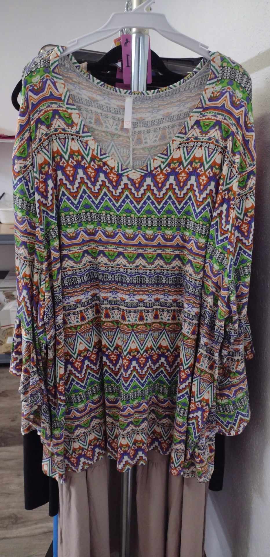 PSFU Pink Green Purple Tie Dye Shirt Top w Keyhole Neckline Detail