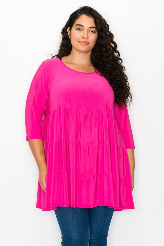 PSFU Navy Top with Ruffle Sleeve and Hem Floral Detail