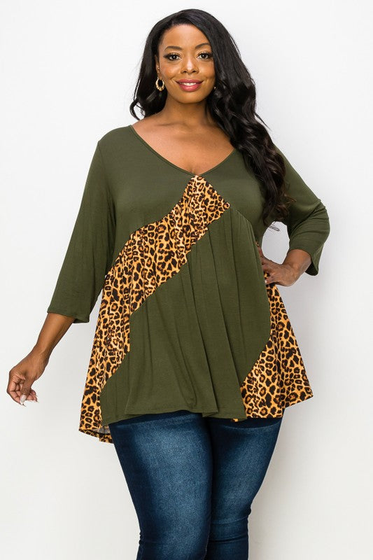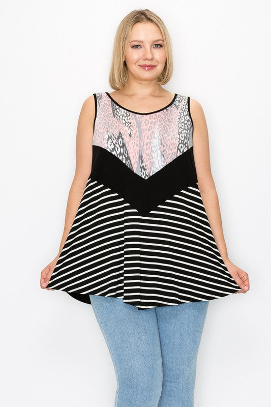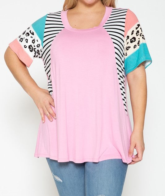 PSFU Black Animal Leopard Stripe Sleeve Top