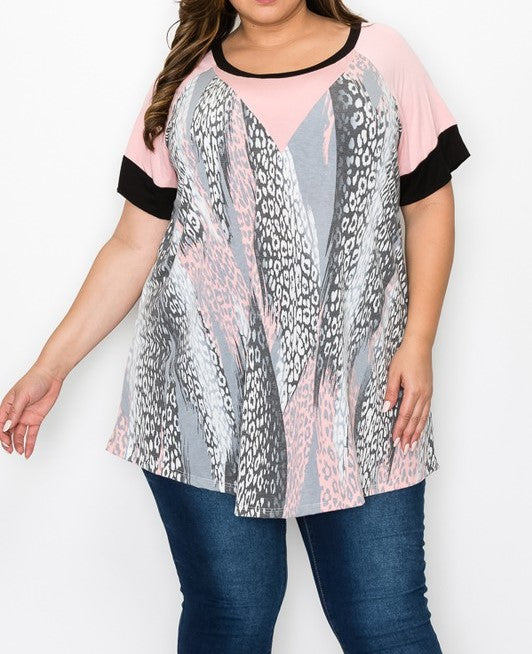 PSFU PINK FEATHER WHIRL PRINT TOP