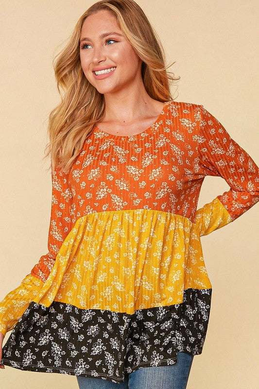 Orange Yellow Black Colorblock BOHO Shirt Top